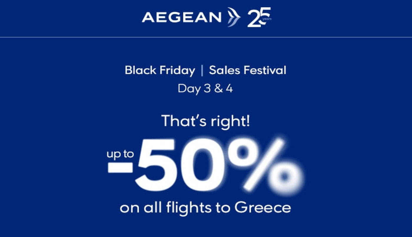 Aegean and Olympic Air launched their Black Friday sale on Friday, which is now in its final 48 hours.