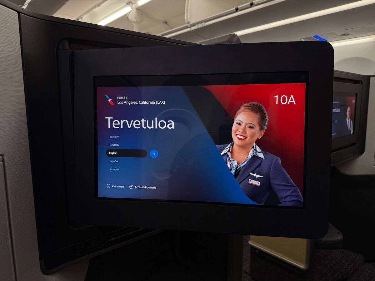 American’s A321XLR business class entertainment screen
