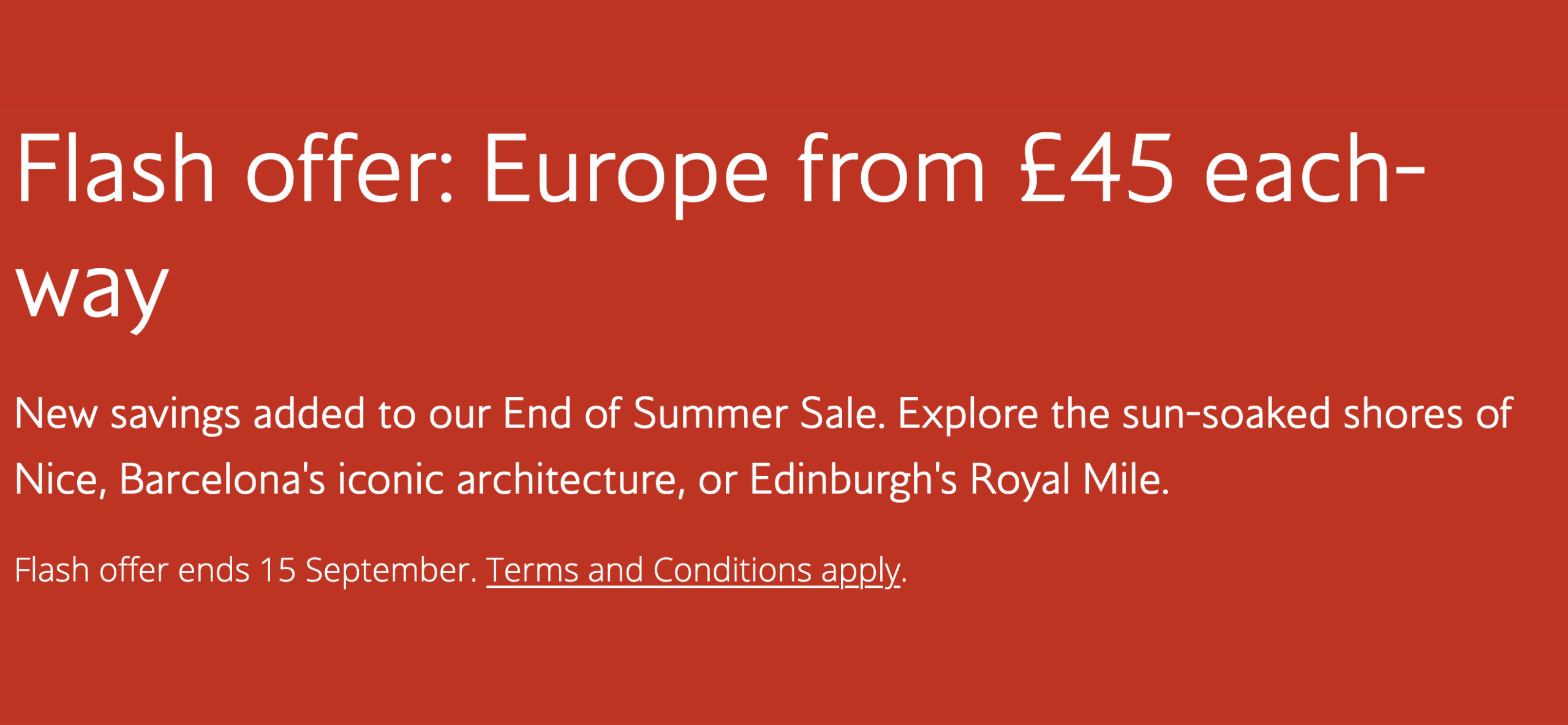 The sale covers dozens of routes from London to the UK and Europe in Euro Traveller (Economy), with lead-in fares starting from just £45 each way.