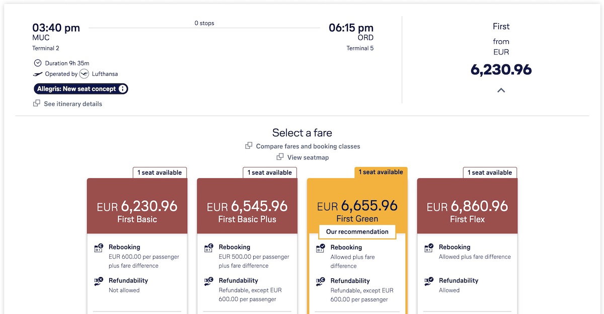 For example, take a “First Flex” fare from Munich (MUC) to Chicago (ORD), where you’ll see that under “Refundability” it shows “Allowed,” so the ticket can be refunded at no cost.